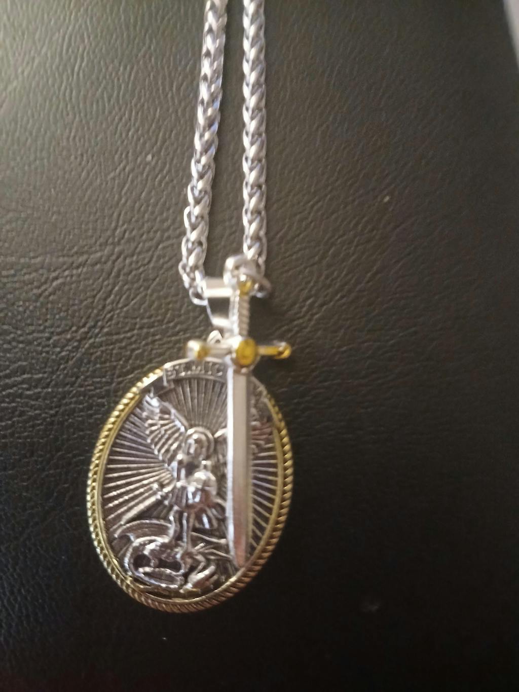 Beautiful well crafted awesome piece of work I love to St Michael and I love the sword wear it everyday.