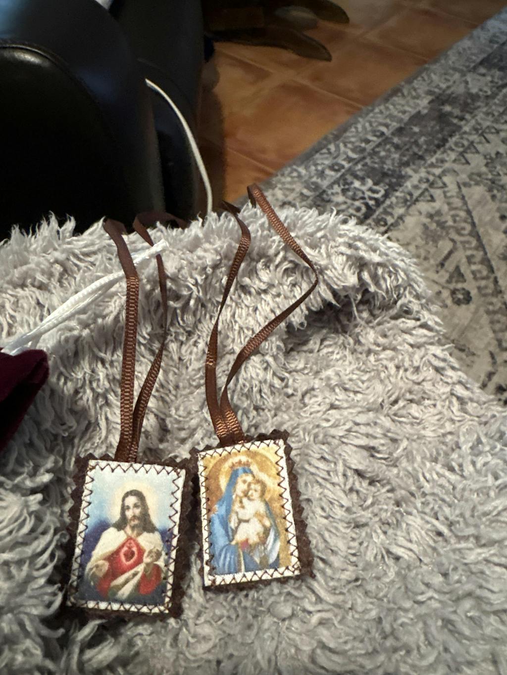 Thank you for the quick delivery of my scapular. I had expected that its construction would have allowed for the back sides of each end to rest against my body. Otherwise, it is fine.