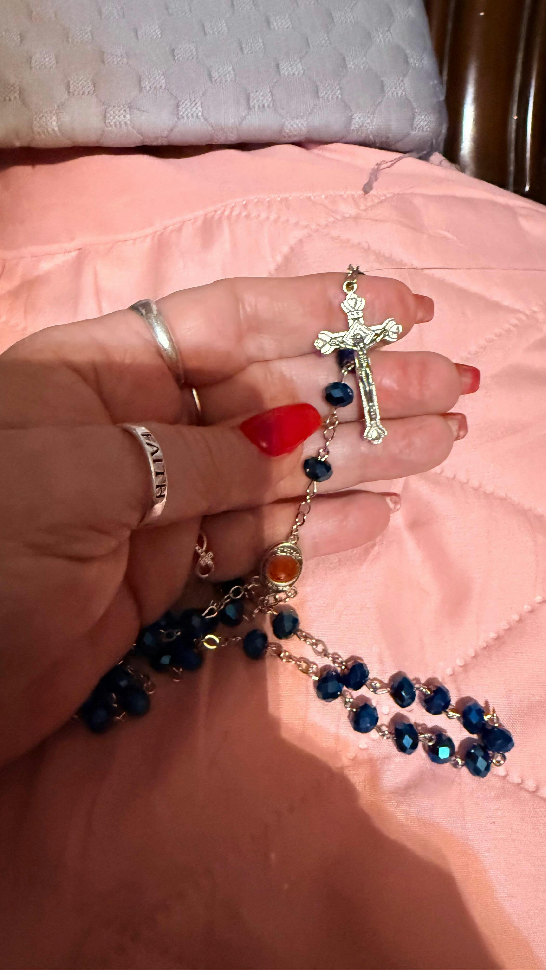 This Rosary is very well crafted and the roses are an added touch to the spiritual meaning behind the blessed Mother and her roses. I am a little surprised though that it Is made of plastic . I would have preferred gemstones but the meaning is still there and I will cherish it.