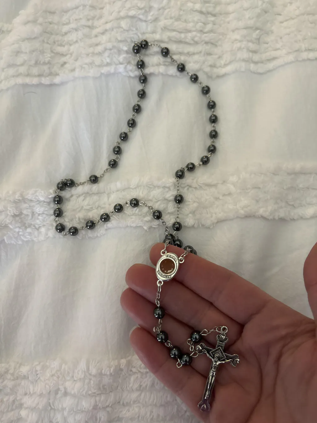 Very nice and so comfortable to pray wth the rosary and always remind us the sacred ness when using.the roary