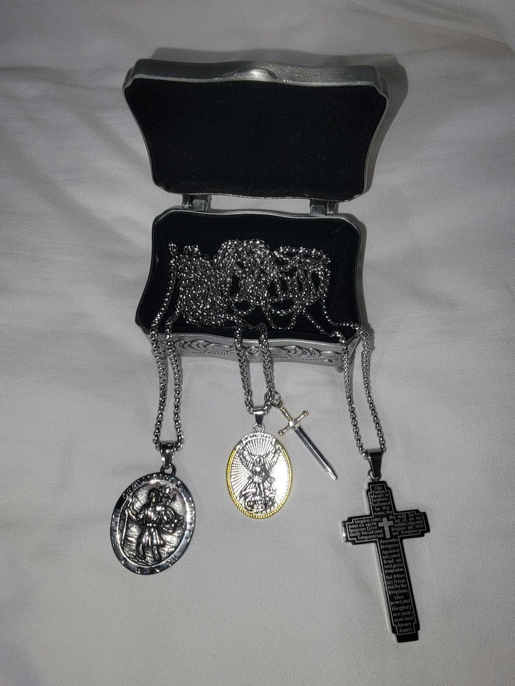 I love the St Michael pendant. I also ordered 2 other pendants, the St Christopher pendant, the Cross with the Lord's Prayer on it,and the Last Supper Trinket box to keep them all in. The box is incredibly beautiful and perfect for holding the medals.