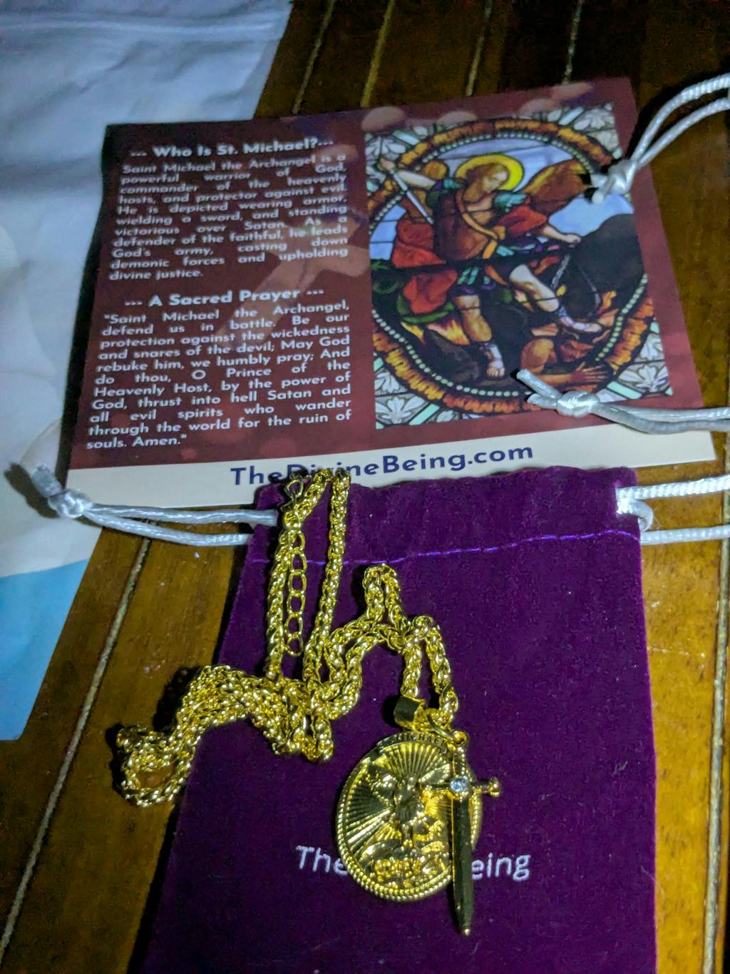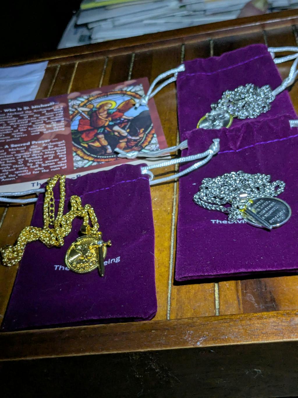 My St. Michael necklaces came today. I gave 1 to my son, gave 1 to my daughter and kept 1 for myself. I’m battling cancer and I’m looking for all the protection I can get. It’s beautifully made. I’m very happy with my purchase. St. Michael protect me.